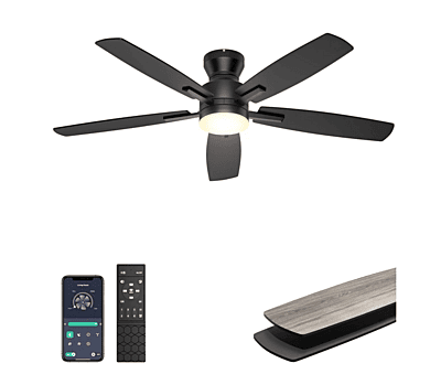 Ceiling Fans with Light - 51 inch Modern Black Low Profile