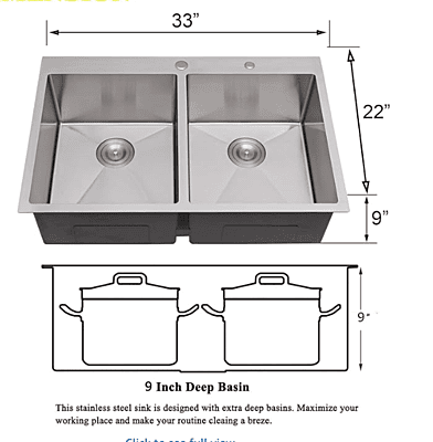 Drop In Kitchen Sink 50/50 Double Bowl Top Mount 33x22 Inch