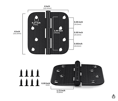 Heavy Duty 4-inch Door Hinge with 5/8" Radius Corners