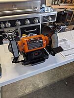 - 4.8-amp motor turns the 8-by-1-inch grinding wheels at speeds of up to 3450 RPM - Perfect for reviving old tools, knives, bits and more - Adjustable eye guards include built-in LED lights to keep your workpiece illuminated - Onboard quenching tray helps cool down workpieces during long grinding sessions - Includes one 60-grit wheel, one 36-grit wheel, pivoting tool rests, adjustable eye guards, built-in LED lights