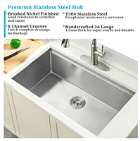 Undermount Kitchen Sink Stainless Steel 30"D x 19"W x 10"H
