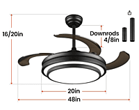 48 Inch Modern Retractable Ceiling Fan With Lights and Remote