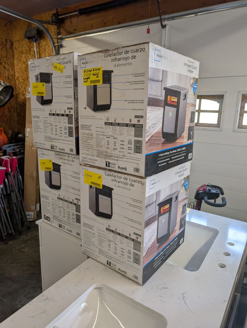 Electric 4-Element Infrared Cabinet Space Heater 2595R, 2533R, 1087R, 2186R Currently selling on Walmart for $85 The Mainstays New 1500W Electric 4-Element Infrared Cabinet Space Heater is designed for indoor use and features 3 heat settings (Low-High-Eco) with an eco-mode that maintains a consistent temperature of 68°F for energy saving. It has a 1-12 hour timer function , extra-large hidden LED display, and thermostat control system to achieve the target temperature. The heater also includes safety features such as overheating and tip-over shut off , cool touch exterior, and child safety lock. It comes with a remote control, convenient portable handle, and cord wrap. The cabinet design allows for placement against a wall, making it a space-saving option. Cash, Paypal, Venmo or in-person Credit Card only... No Trades... If it's listed, It's available Pickup only - 127 Ridge Road, Kersey, PA