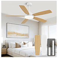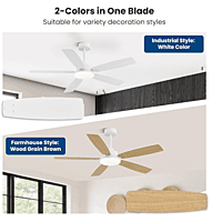 Modern 52 Inch Ceiling Fans with Lights and Remote for Bedroom Living Room Kitchen Home Office Indoor/Outdoor, 3CCT Dimmable, Dual Color 5 Blades 6 Speed Reversible Quiet DC Motor, White/Wood Grain