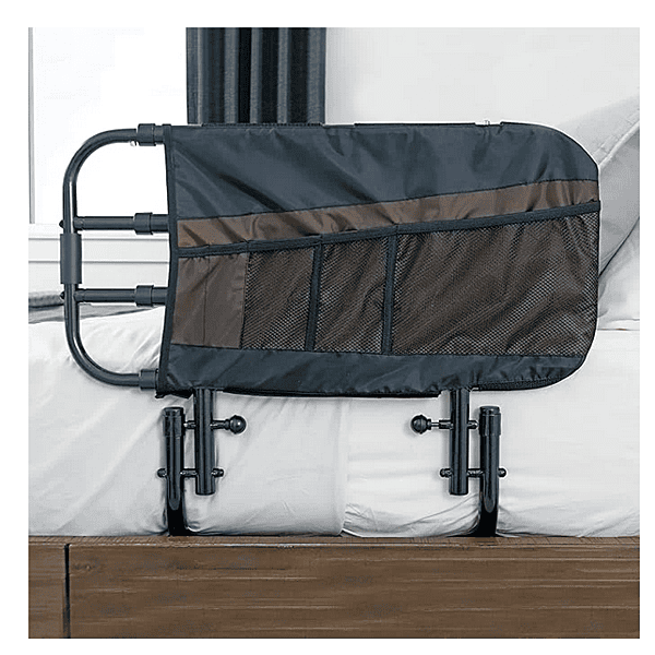 Stander EZ Adjust Bed Rail, Adjustable Senior Bedrail and Safety Assist Railing for Elderly Adults with Organizer Pouch, ASTM Safety Approved Guard-Rail, Black