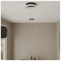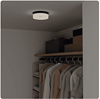 This stylish and practical flush mount ceiling light will be a welcome addition to your home. This light is sleek and clean, providing ideal lighting in any room of the house. Pair with other items from the Lynnpark collection for a complete and updated look. Integrated 16 watt LED light source means you never need to change a light bulb Matte black finish is sleek and sophisticated, and frosted acrylic shades lends a cool glow