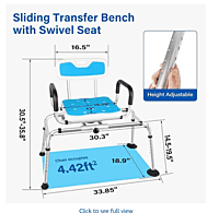 Sliding Shower Chair Tub Transfer Bench with Swivel Seat