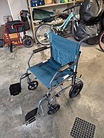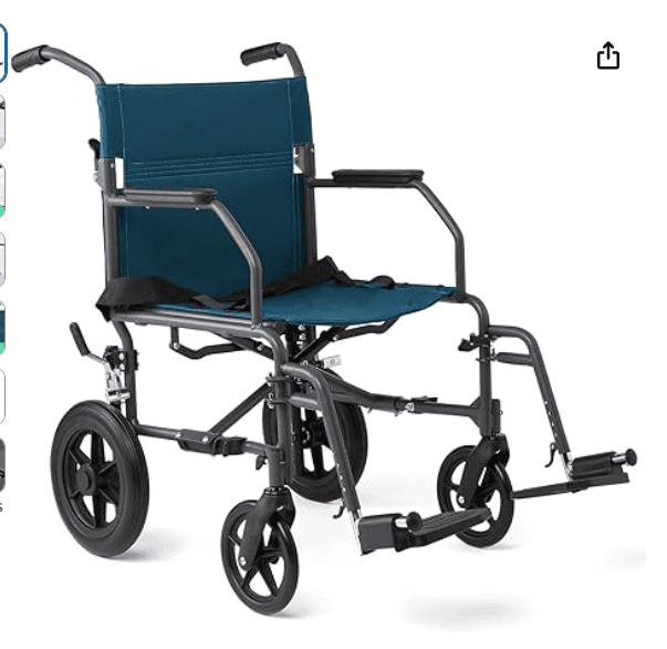 Foldable Transport Wheelchair 43743363 1930G Check out my full inventory at: re-boxed.shop Currently selling online for $140 Brand Medline Color Teal Item Weight 34 Pounds Style Modern Product Dimensions 24"D x 11"W x 23.5"H