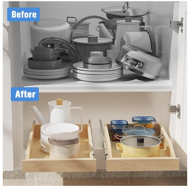 Single Pull Out Wood Cabinet Organizer 10-1/2”W x 21”D