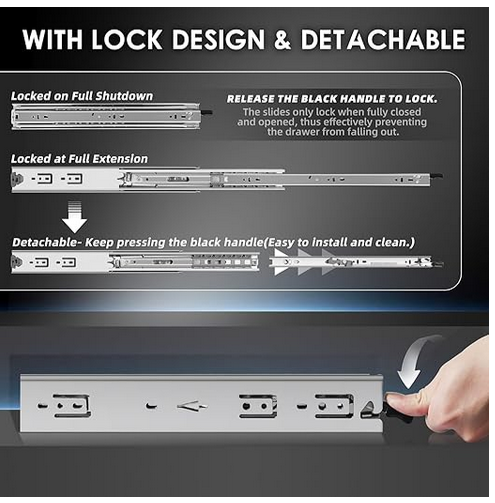 Heavy Duty Drawer Slide Set - Side - 18 inch - 150lb
