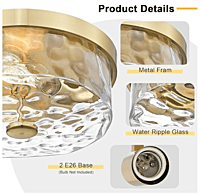 Flush Mount Ceiling Light with Water Ripple Glass Shade