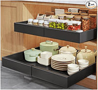 2 Pack Pull Out Black Cabinet Organizers - Metal - Expandable