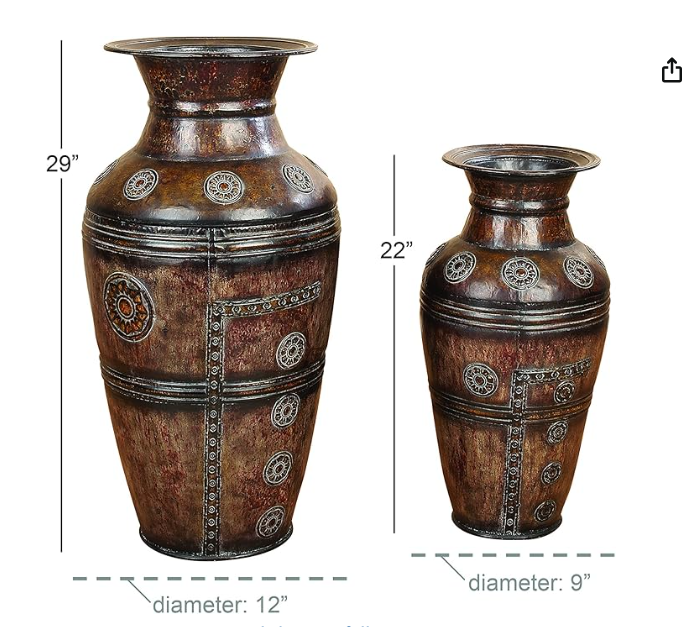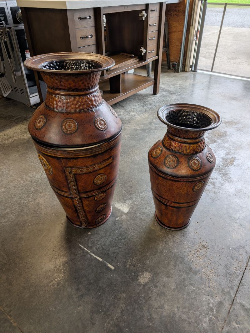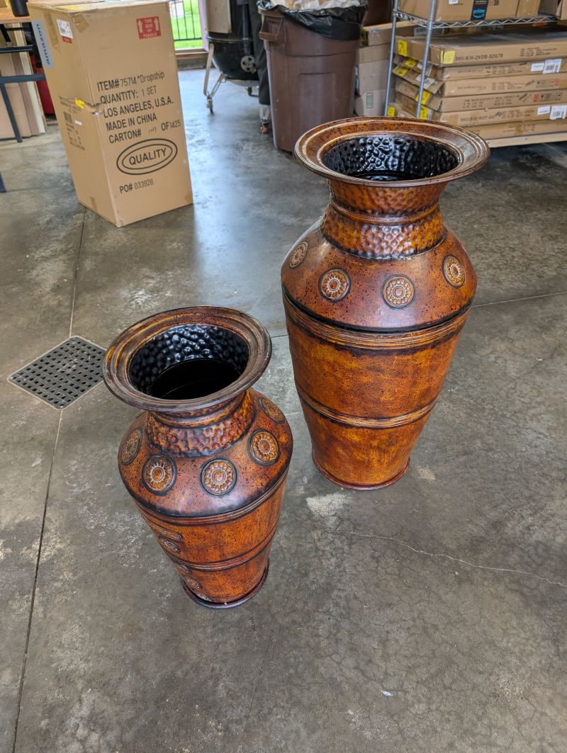 Metal Decorative Indoor Outdoor Vases Set of 2 46330059 2009U Currently selling online for $132 Check out my full inventory at: re-boxed.shop Pickup only - 127 Ridge Road, Kersey, PA Vase Set - Large Height 29" and Small Height 22"H These vases feature a classic design and intricate details. No assembly required Cash, Paypal, Venmo or in-person Credit Card only... No Trades... If it's listed, It's available Pickup only - 127 Ridge Road, Kersey, PA Check out my full inventory at: re-boxed.shop