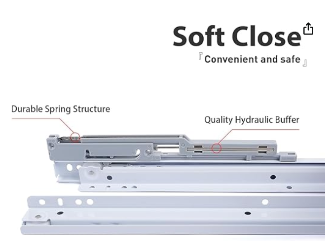 Molvyan Soft Close Drawer Slides - Side - 2 pair - 22 inch