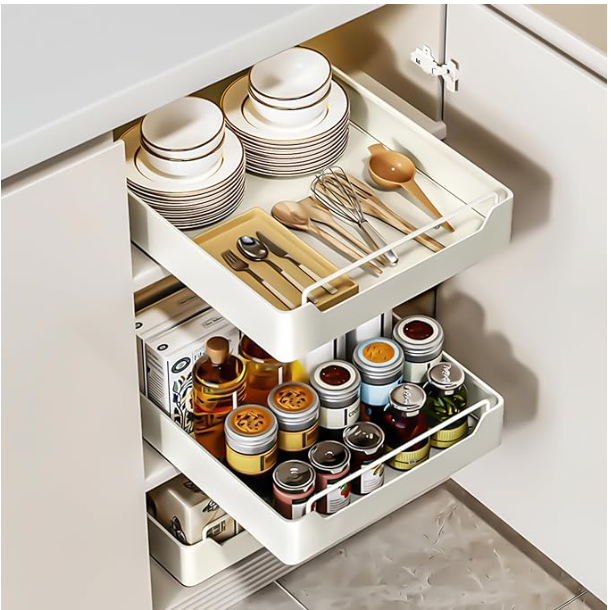 Pull Out Cabinet Organizer - 2 Pack - 12.2" W x16.9 D 1209F, 1502F Currently selling on Amazon for $45 Specific Uses For Product Cabinet Organizer Pull Out Drawers Shelf Material Carbon Steel Special Feature Sliding Shelf, Pull-Out Shelf Color off white Finish Type Polished Product Dimensions 16.9"D x 12.2"W x 2.75"H Number of Items 2 Cash, Paypal, Venmo or in-person Credit Card only... No Trades... If it's listed, It's available Pickup only - Kersey, PA