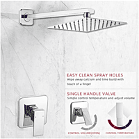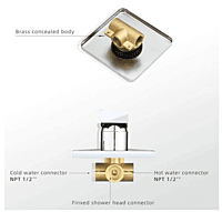 LUXURY DESIGN: Swivel ball allows you to adjust the angle of the showerhead to suit your preference. MATERIAL: Chrome plated 304 stainless steel shower head and wall mounted brass valve construction. UNIVERSAL TYPE: 1/2" NPT thread shower arm, standard in the USA. Simply screw on and turn on your new waterfall shower. LARGE SIZE: 8" square shower head offering a good coverage to soak your entire body