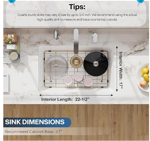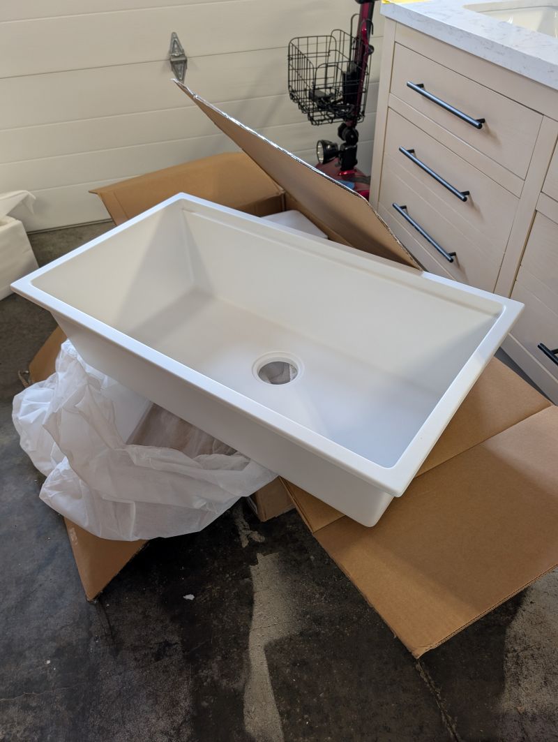 White Granite Composite Laundry Kitchen Sink - Undermount - 33x19