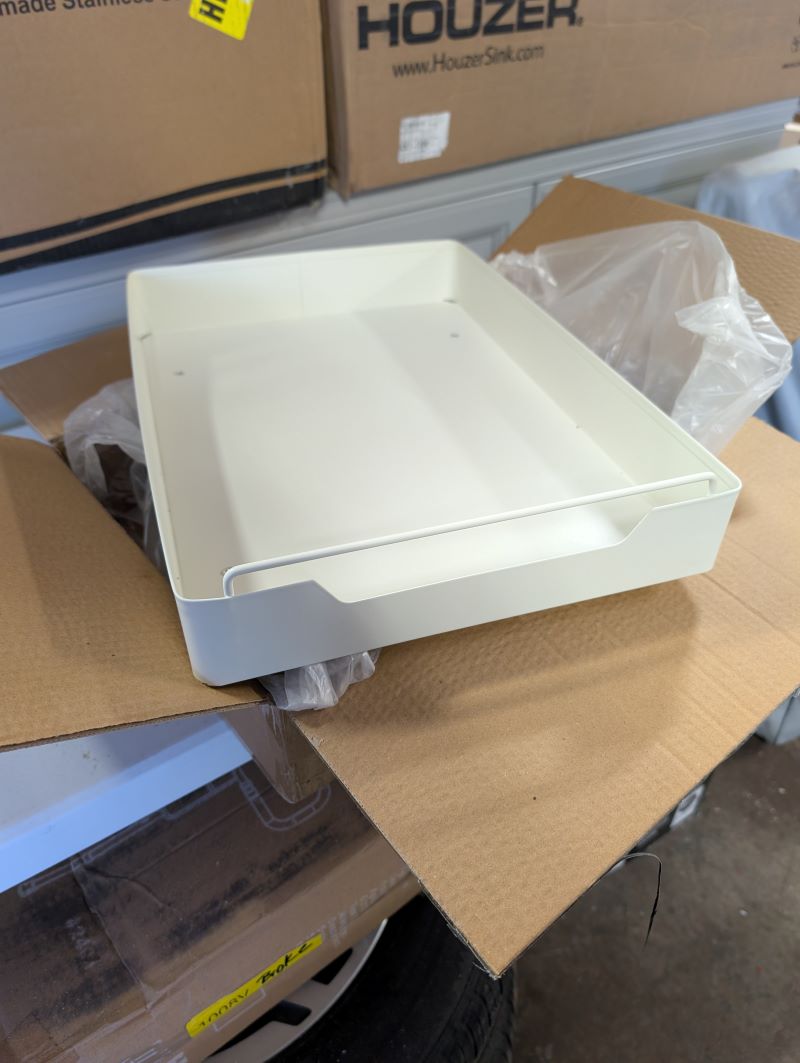 Pull Out Cabinet Organizer - 2 Pack - 12.2" W x16.9 D 1209FF, 1502F Currently selling on Amazon for $45 Specific Uses For Product Cabinet Organizer Pull Out Drawers Shelf Material Carbon Steel Special Feature Sliding Shelf, Pull-Out Shelf Color off white Finish Type Polished Product Dimensions 16.9"D x 12.2"W x 2.75"H Number of Items 2 Cash, Paypal, Venmo or in-person Credit Card only... No Trades... If it's listed, It's available Pickup only - Kersey, PA
