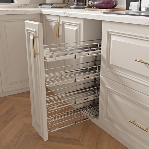 4-Tier Narrow Pull Out Cabinet Organizer - 8" W x 21" D