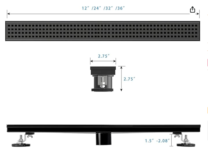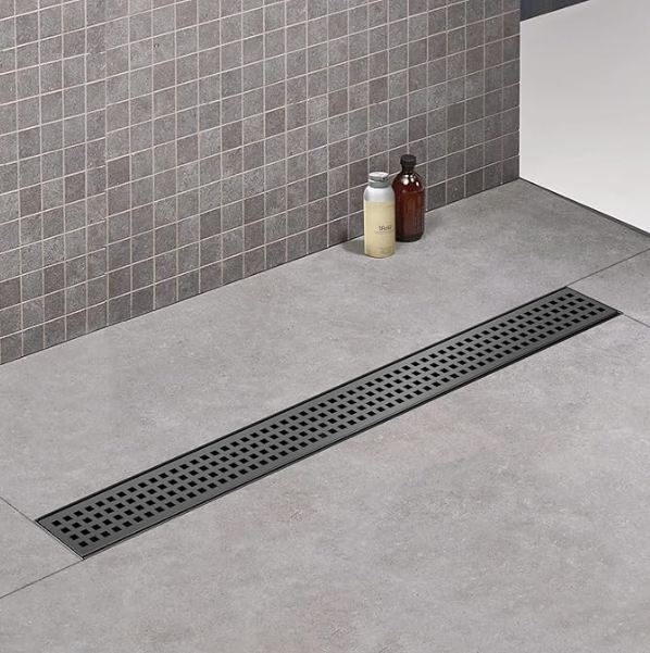 Shower Drain, Black 28 inch with Removable Grate Cover